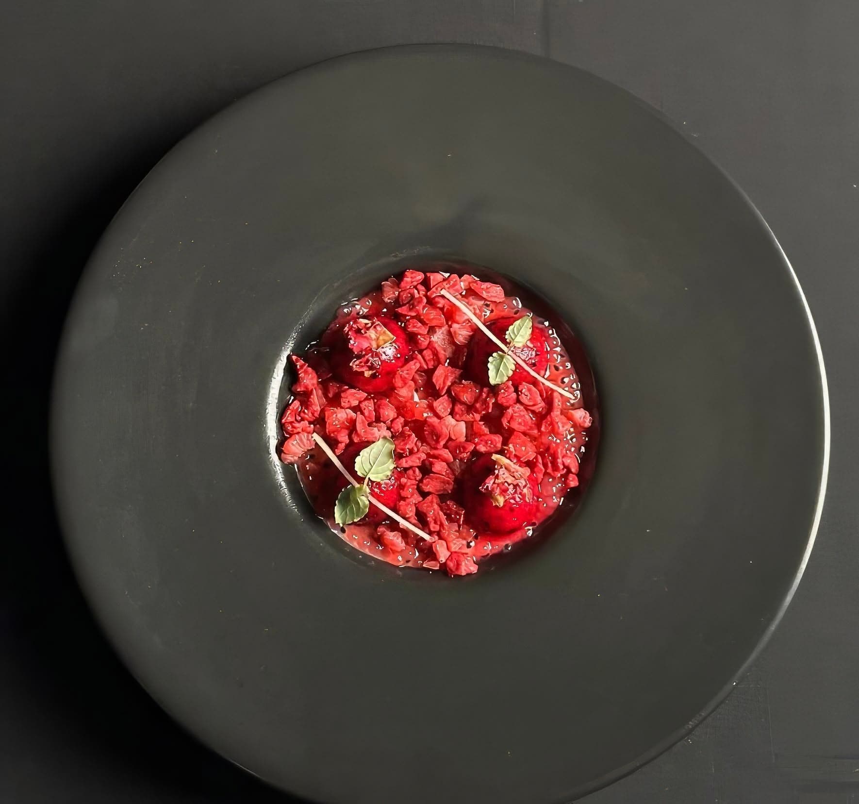 Dragon fruit, raspberry tapioca and basil seeds