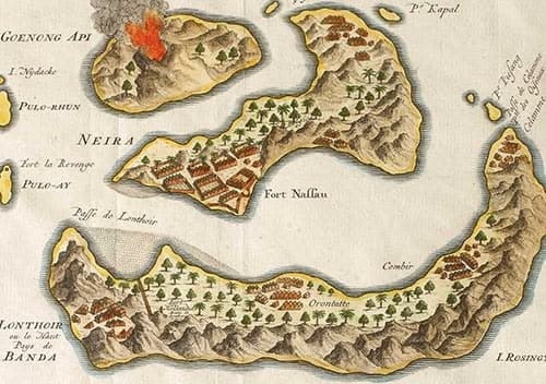 There were only 5 islands, about 10kms apart, in the Banda sea that grew nutmeg and despite that short distance between them, the Dutch controlled three islands and the English held two.